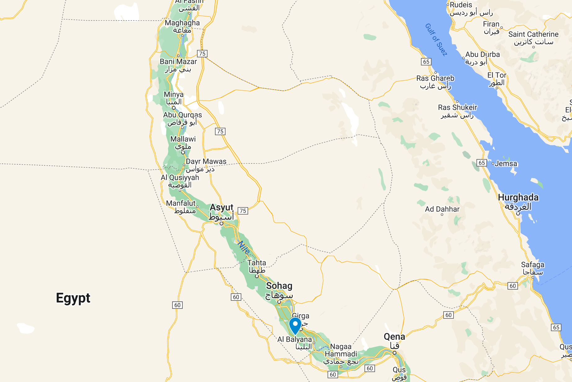 El-Birba — John Gardner Wilkinson, a 19th century Egyptologist proposed this modern village as the site of Thinis due to its proximity to Abydos and El-Birba’s meaning, “The Temple.” Georges Émile Jules Daressy pointed to the mud-brick ruins there, a statue of Ramses II, and a stone falcon linked to Onuris (Thinis’ patron god) and its strategic location on the Kharga Oasis trade route.